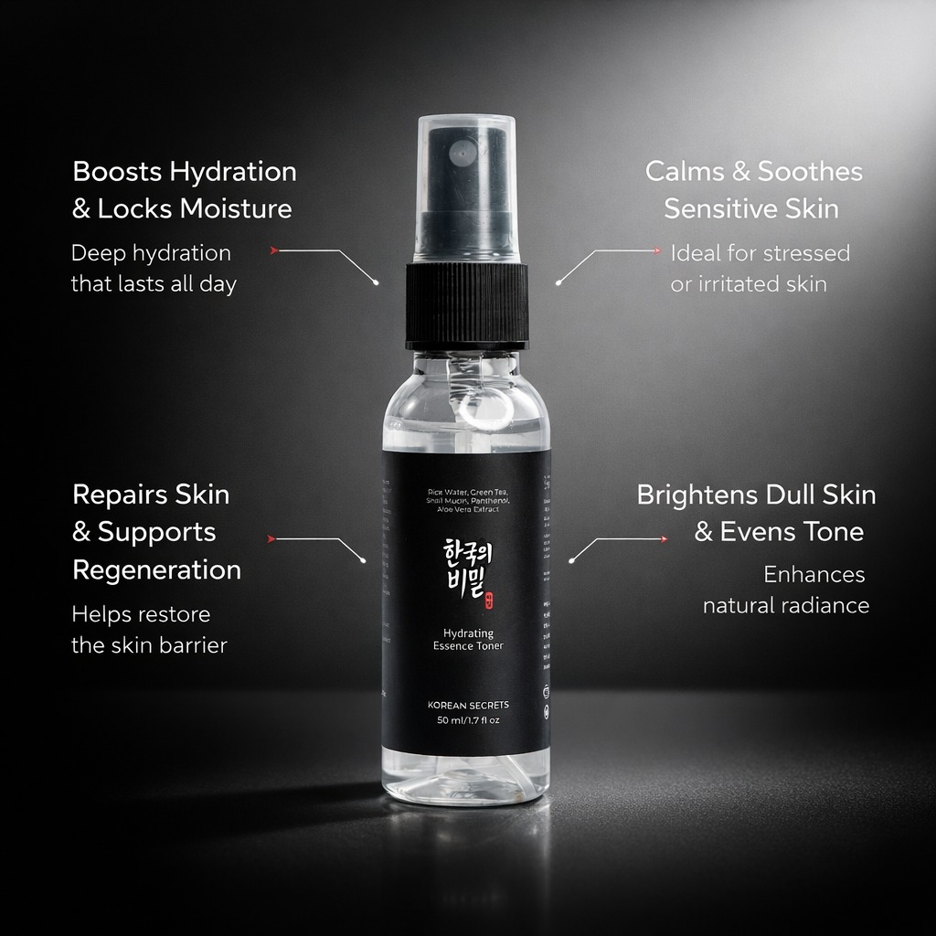 Give your skin the care it deserves with Korean Secrets Hydrating Essence Toner—the secret to calm, balanced, and radiant skin 🌸✨