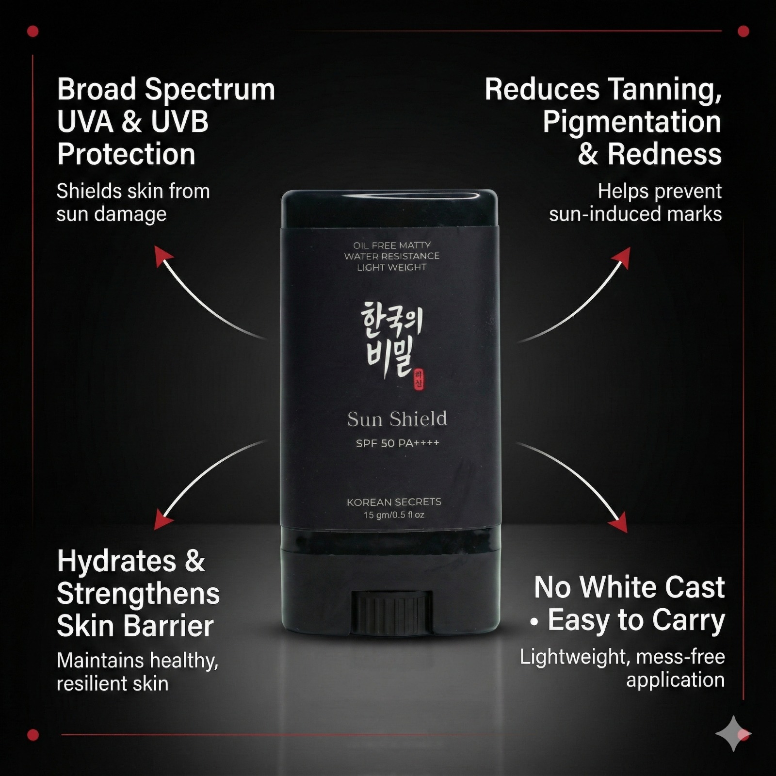 Protect your skin anytime, anywhere with the Korean Secrets Sun Shield Sunscreen Stick, a powerful yet skin-friendly formula designed for daily sun defense and effortless reapplication.